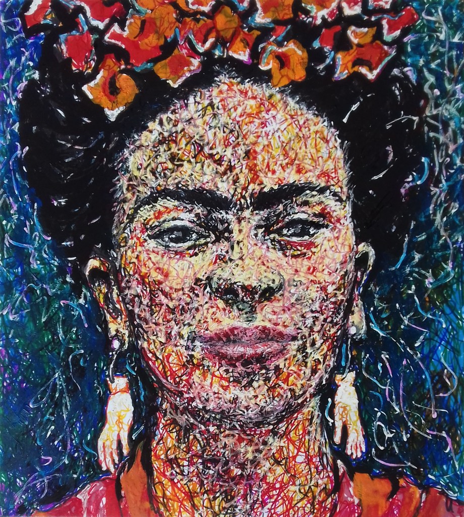Ik heb bij het portret van Frida Kahlo gebruik gemaakt van stift en verf.