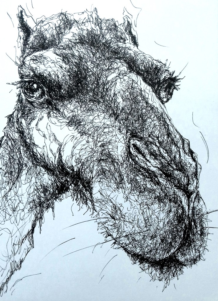 Een vriendin had een mooie foto gemaakt van een dromedaris. Het inspireerde me om pen en papier te pakken, want wat een wonderlijk hoofd heeft die zeg ;-).
