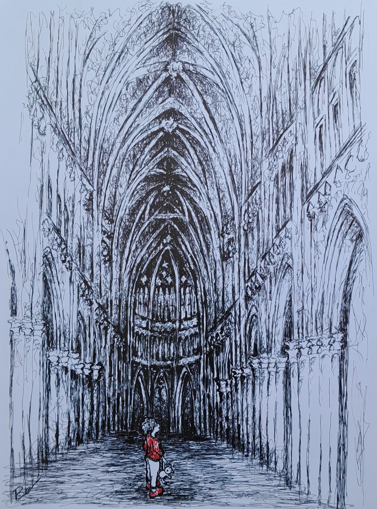 Ah fijn je tekeningen weer te mogen bewonderen 😊 Wat mooiii gedaan weer enne jemig die binnenkant van de kerk, wat een knap staaltje tekenwerk zeg! Als ik een pet op had dan deed ik ‘m voor je af 😆