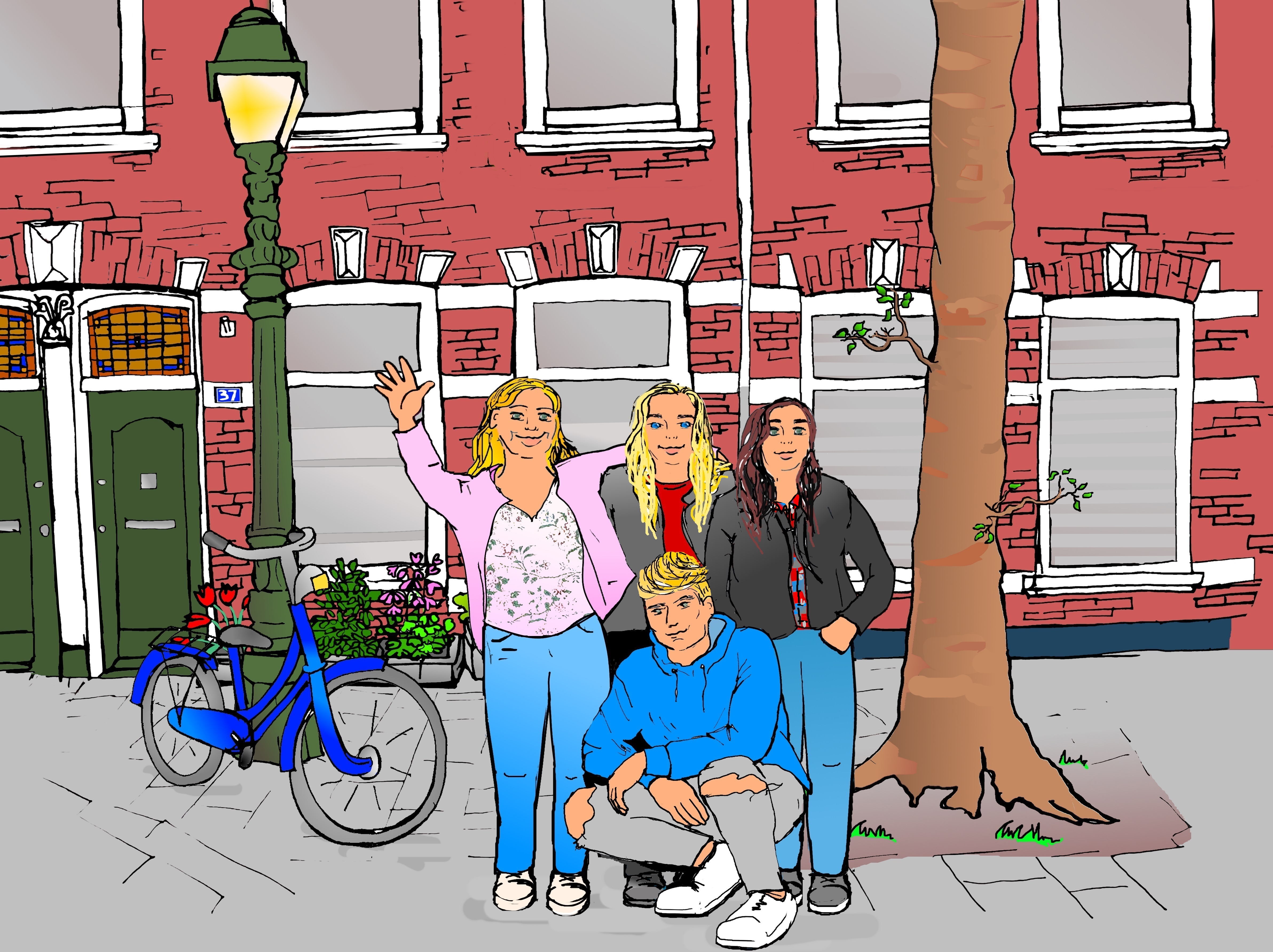 Hieronder mijn tekening n.a.v. een opdracht. De opdrachtgever wilde een poster laten maken in de stijl zoals ik de tekeningen voor de BBD Den Haag maak. De opdracht was haar huis weer te geven met haar gezin.