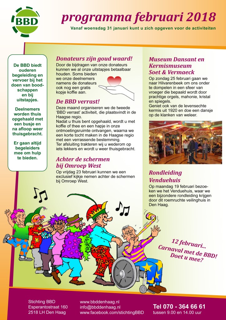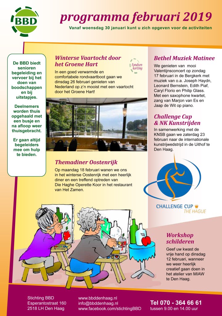 Hieronder is te zien hoe mijn illustratie op de eerste blz. van het programma van de BBD is verwerkt in februari 2019.