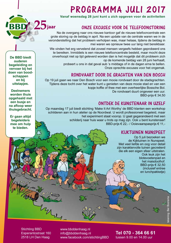 Hieronder is te zien hoe mijn illustratie op de eerste blz. van het programma van de BBD is verwerkt in augustus 2019.
