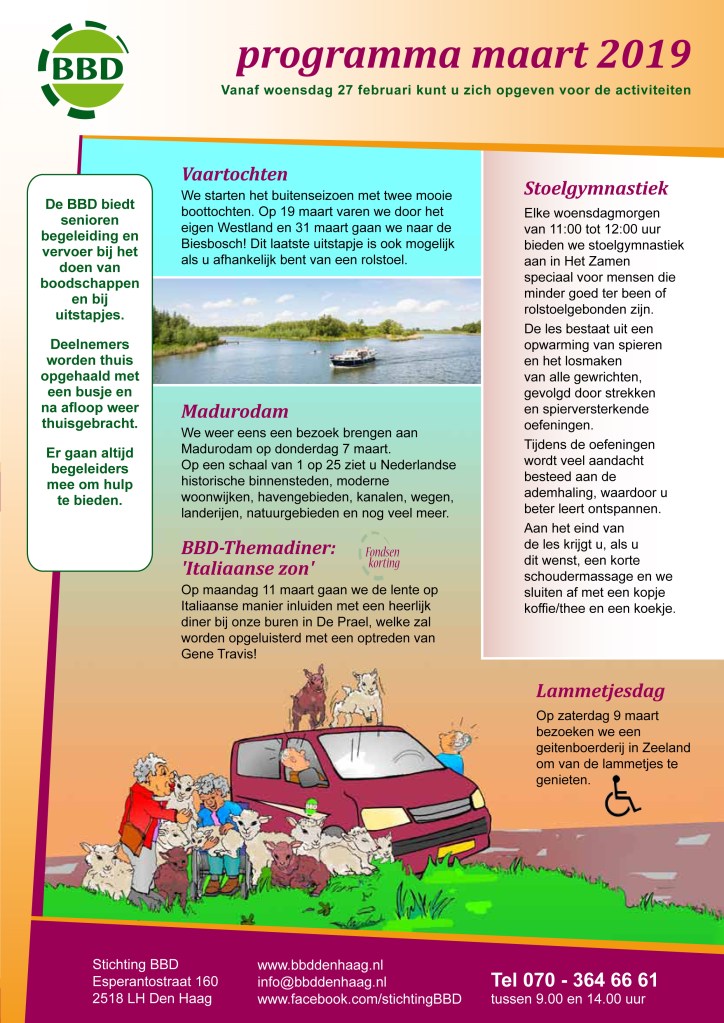 Hieronder is te zien hoe mijn illustratie op de eerste blz. van het programma van de BBD is verwerkt in maart 2019.