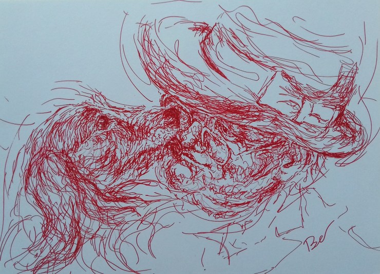 ‘Bat’ ink on paper, 30×40 with passe- partout.