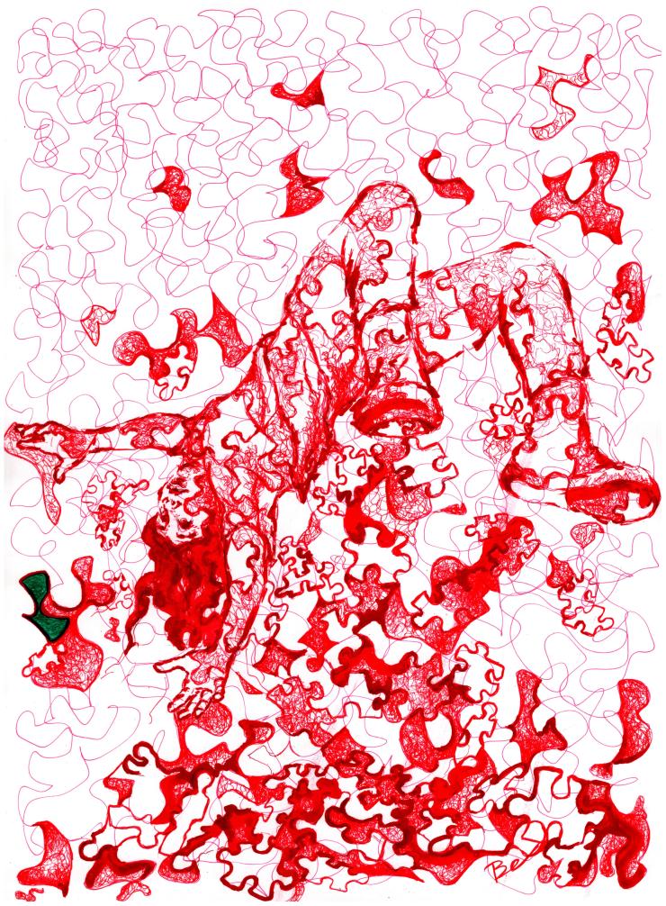 Pick up the pieces, ink on paper 30×40 cm